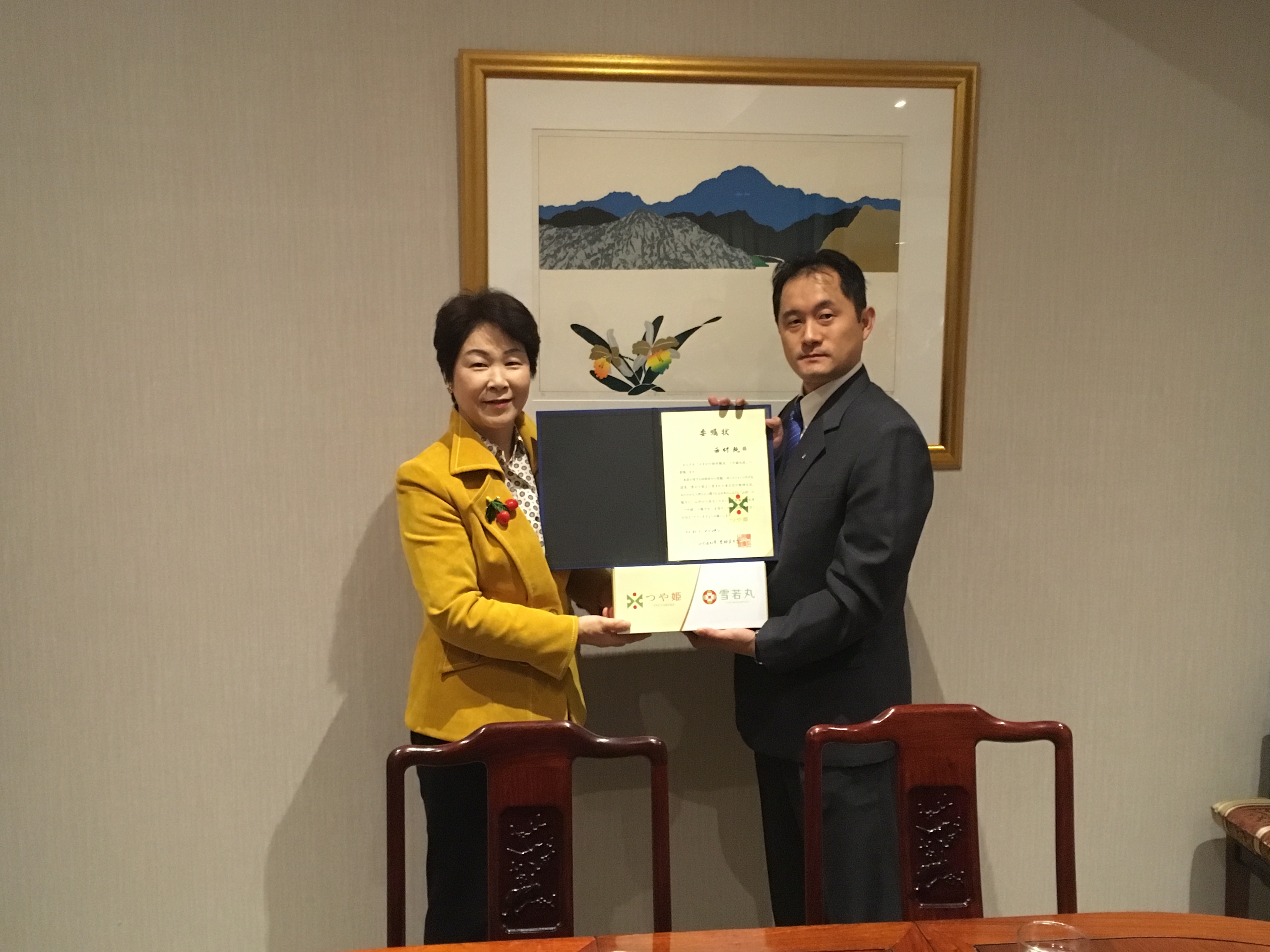 ▲ 日本山形縣縣長受贈日本觀光大使聘書已示證明。